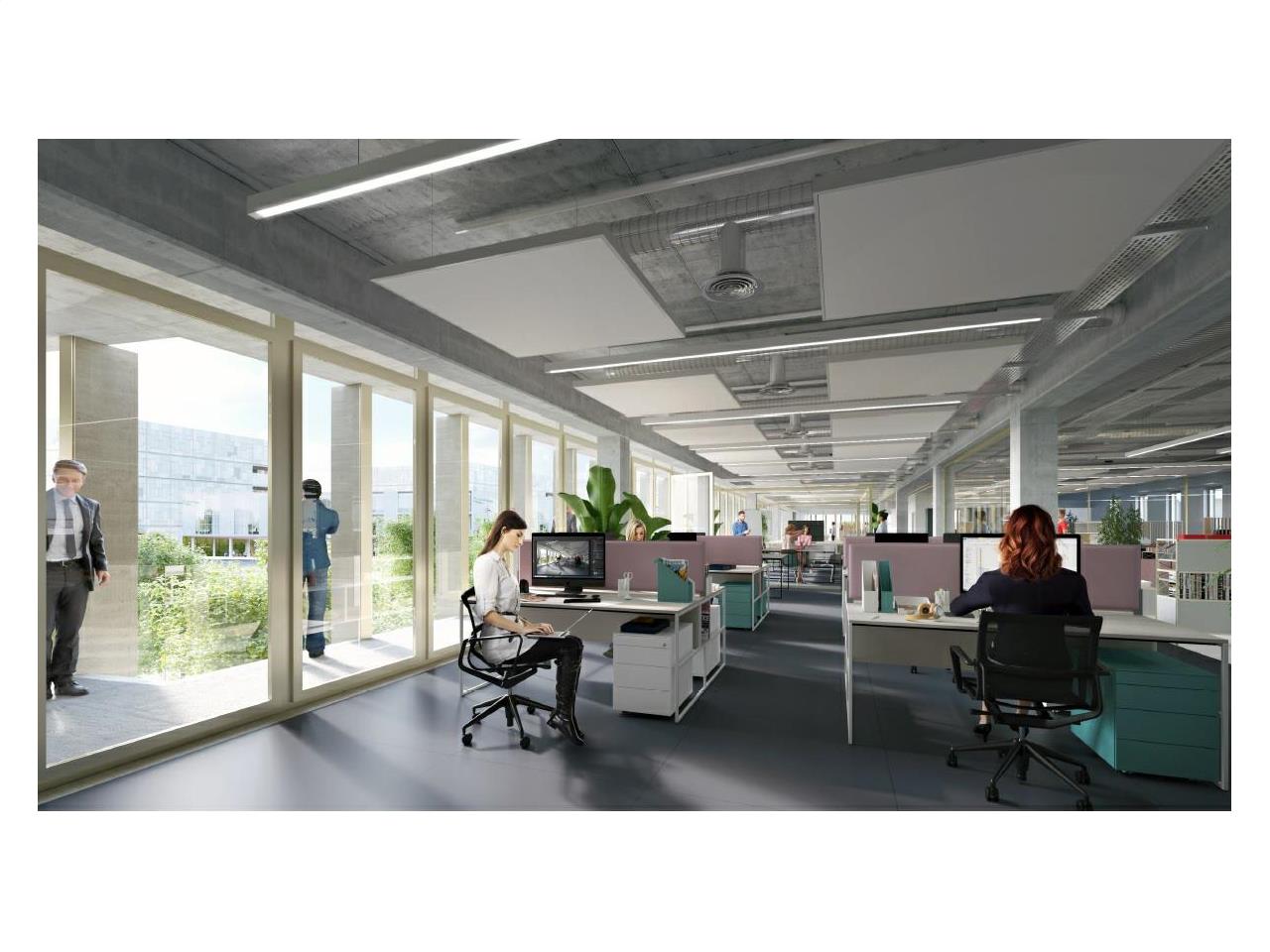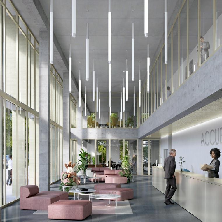 - R+3: Plateaux de bureaux avec balcons filants sur les façades orientées sud et ouest, 1 cafétéria et une grande terrasse végétalisée accessible.