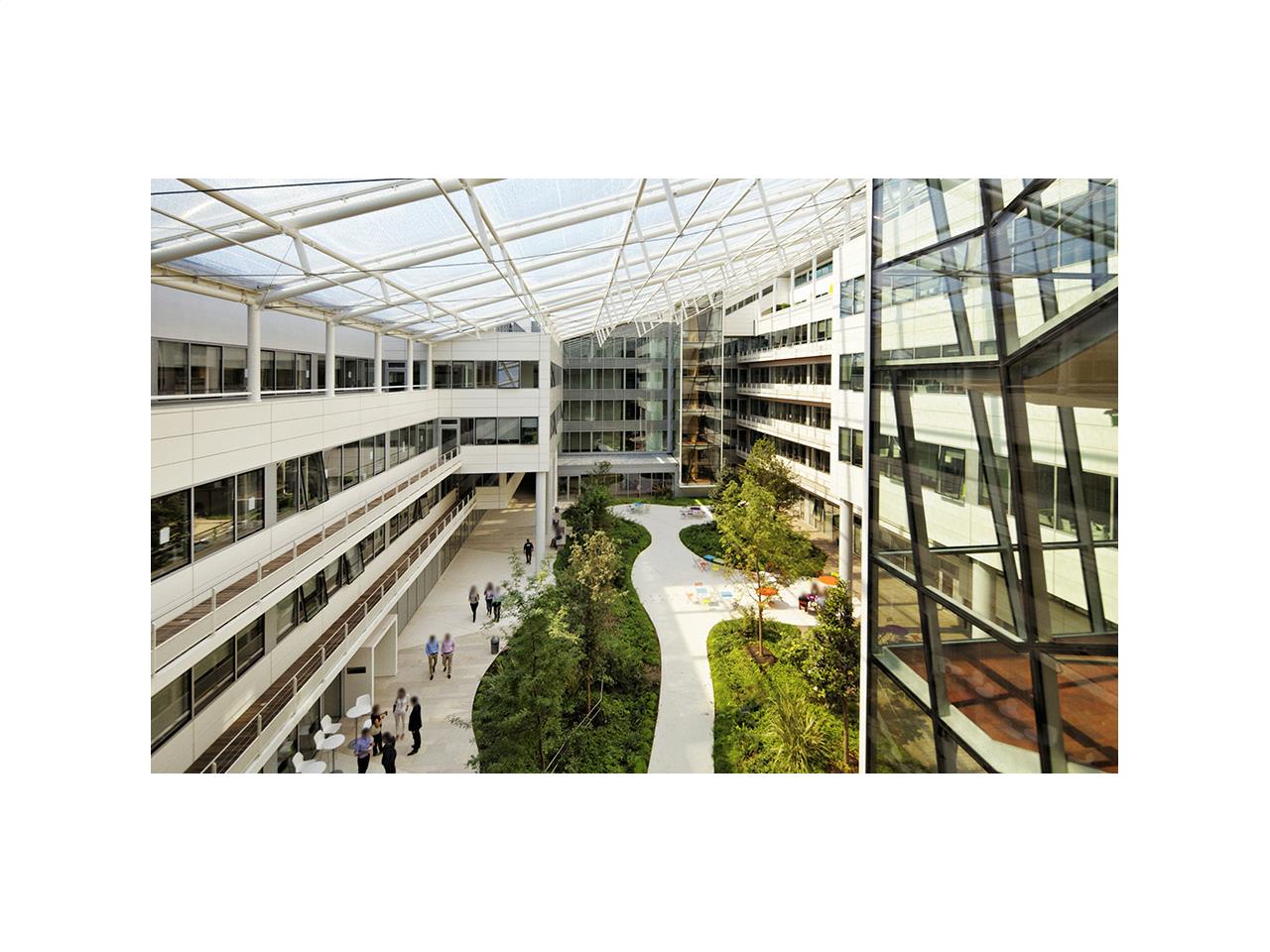 Dans leParc d'affaires NEVEOS sur les communes du Plessis Robinson et Clamart, Solaris propose une architecture innovante et intelligente avec panneaux solaires photovoltaïques, espaces végétalisés et arrosage par récupération des eaux de pluie. Bâtiment certifié HQE, BREEAM, LEED, labellisé BBC.