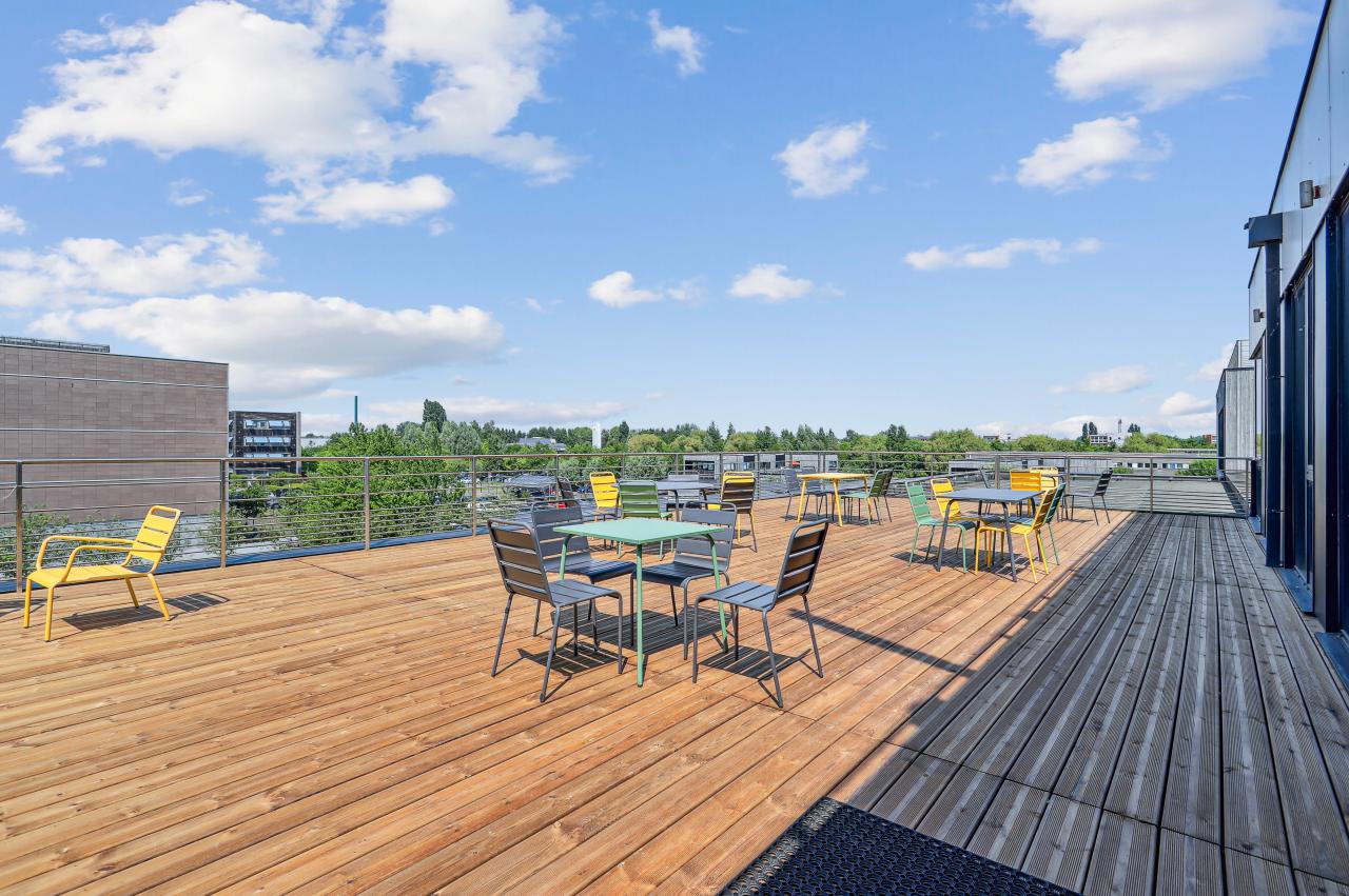 - 28 postes de travail meublés hors fauteuil - avec accès à l'espace restauration/pause, sanitaires, salles de réunions, terrasse