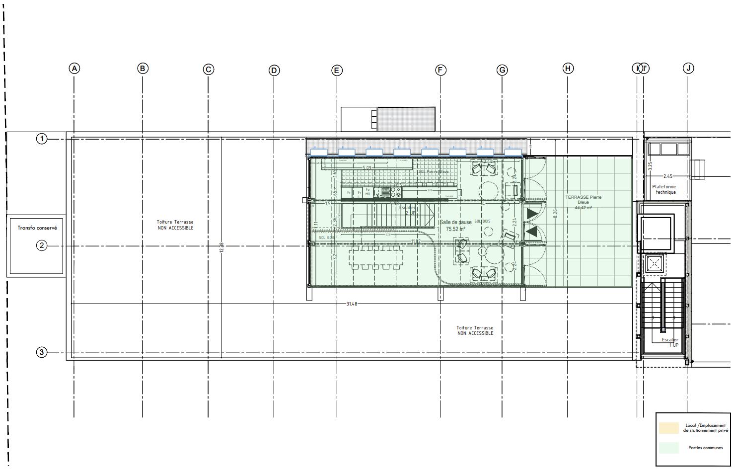 Vous aurez également accès à une zone de convivialité commune de 75 m², équipée d'une cuisine moderne et meublée ainsi que d'une terrasse de 45 m².