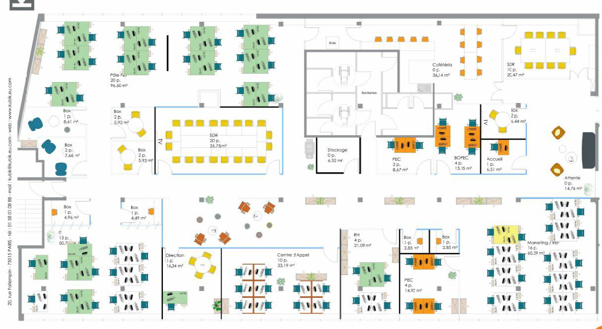 75 postes de travail, possibilité de densifier, Flexibilité d'aménagement