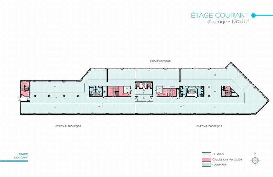 L’opération MAILLE NORD est composée de 4 bâtiments indépendants de type R+9. Les immeubles ont été conçus pour permettre la plus grande souplesse d’utilisation facilitant l’aménagement d’espaces paysagers ou de bureaux cloisonnés.