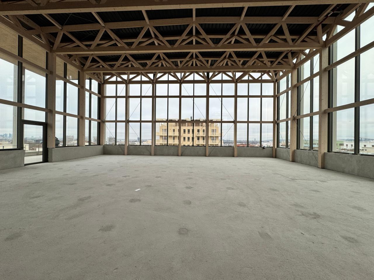 Terrains de basket au dernier étage mis en valeur avec des hauteurs généreuses