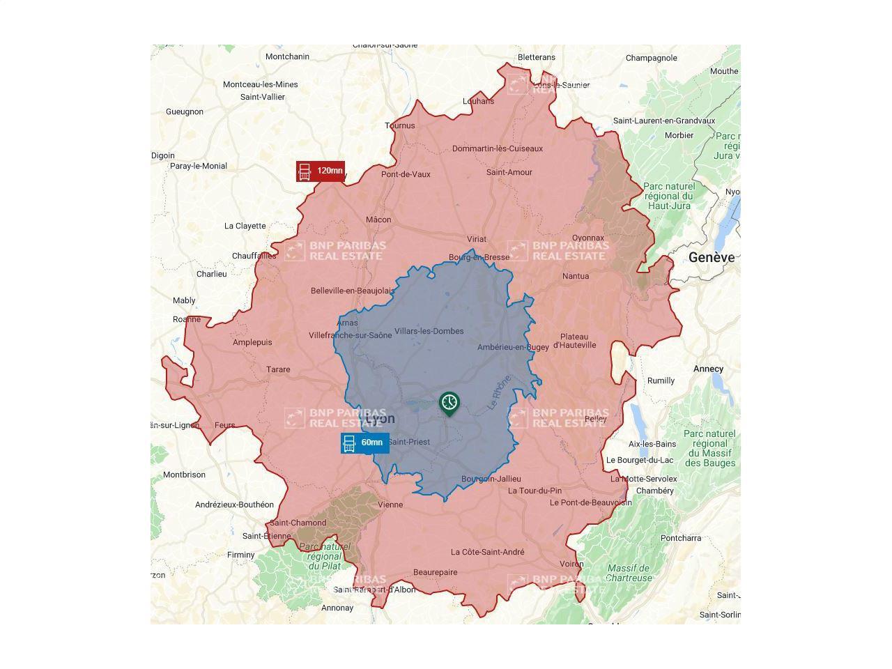 Personnalisez et délimitez la zone de distance en fonction du moyen de locomotion. Par défaut, la zone est programmée à 5 min à pieds.