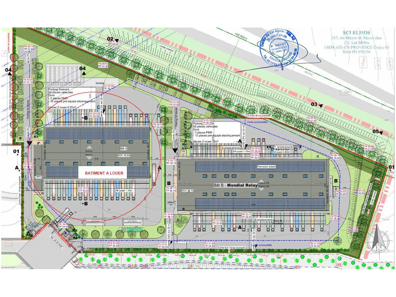 - Bureaux en R+ 1 et Locaux Sociaux : 505 m²