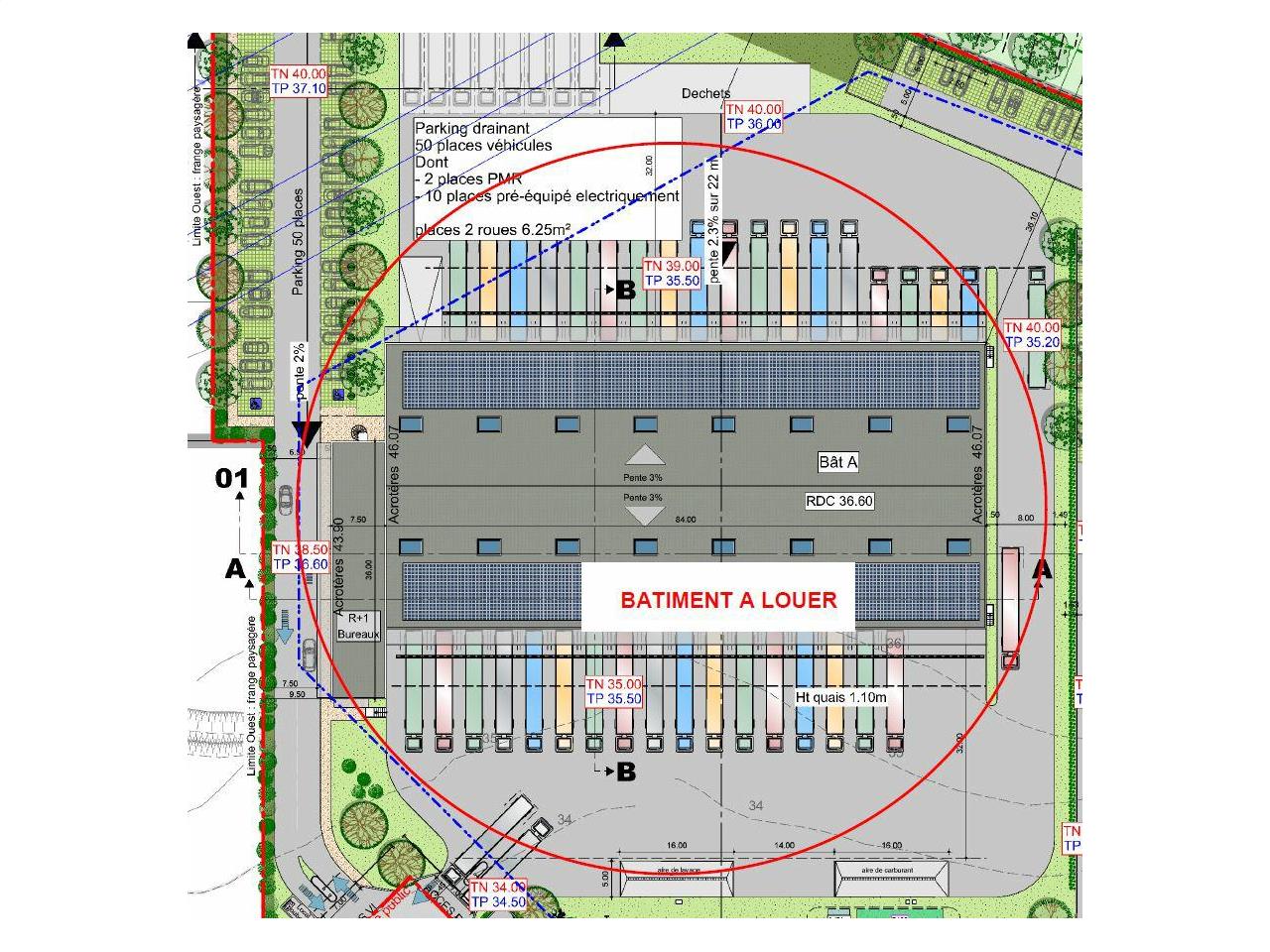 Parking : PL : 8 places - VL : 50 places dont 10 places pré-équipées électroniquement et 20 places PMR