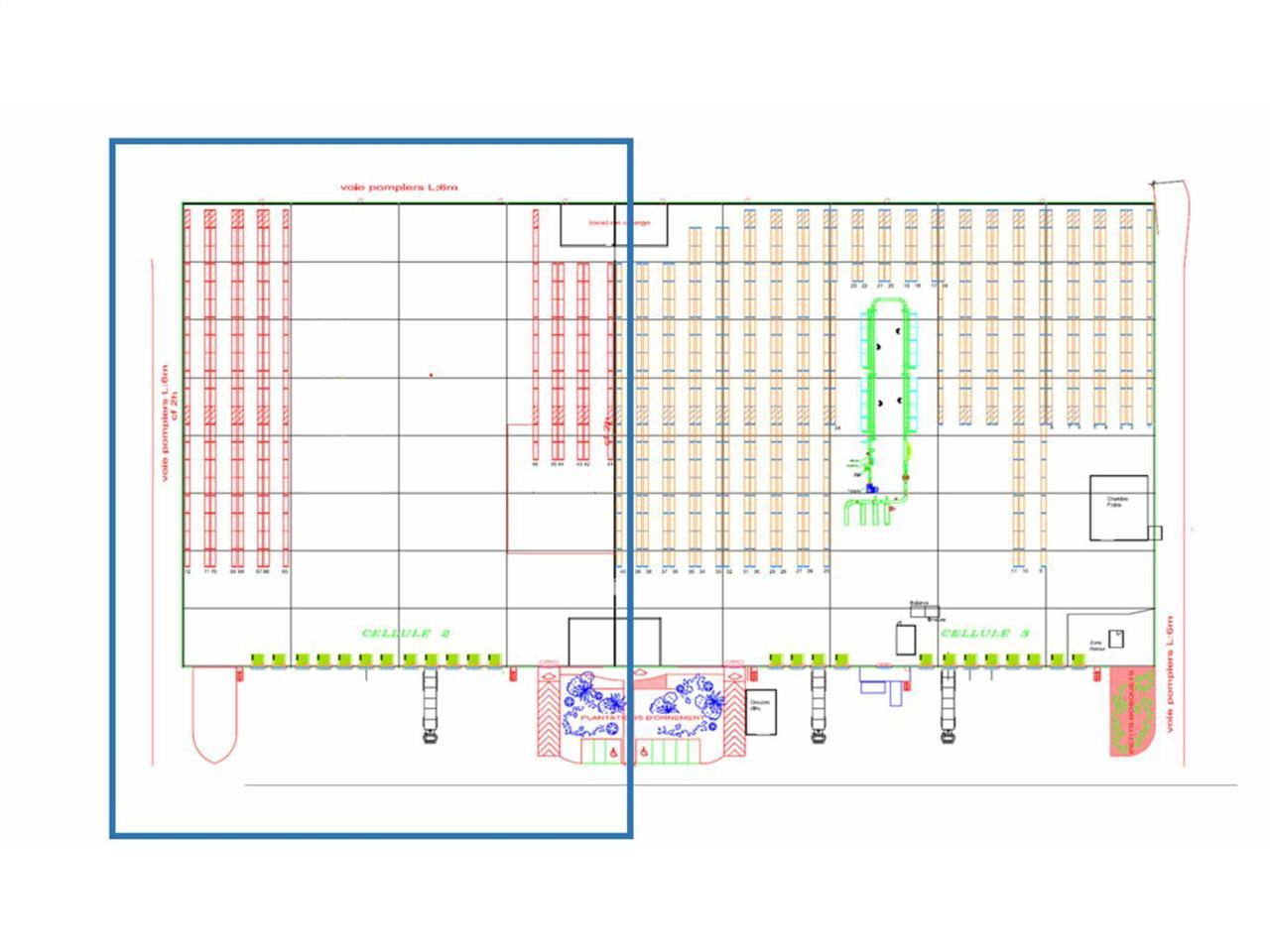 - Trame de poteaux : 22,5X11,8 – Profondeur 96 m²