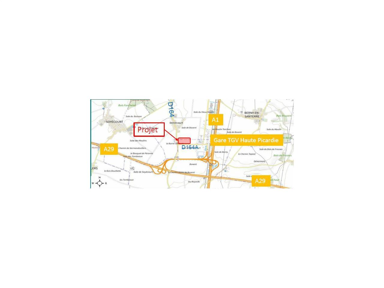 Le projet est idélement situé en bordure de l'A1 et l'A29. Le site est accessible en transport via la gare SNCF TGV Haute Picardie.