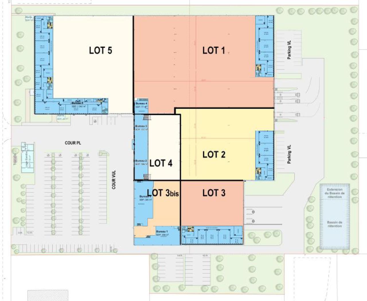 La divisibilité retenue du projet permet un éventail de lots présentant des surfaces d'activités comprises entre 1 100 m² et 5 300 m²