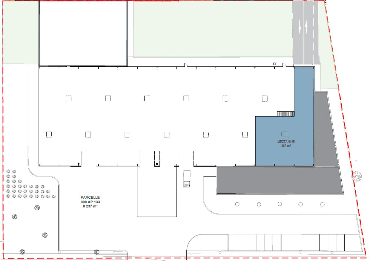 Surface totale : 2 534 m² (Locaux d'activité de 2 175 m² et Mezzanine de 359 m²)