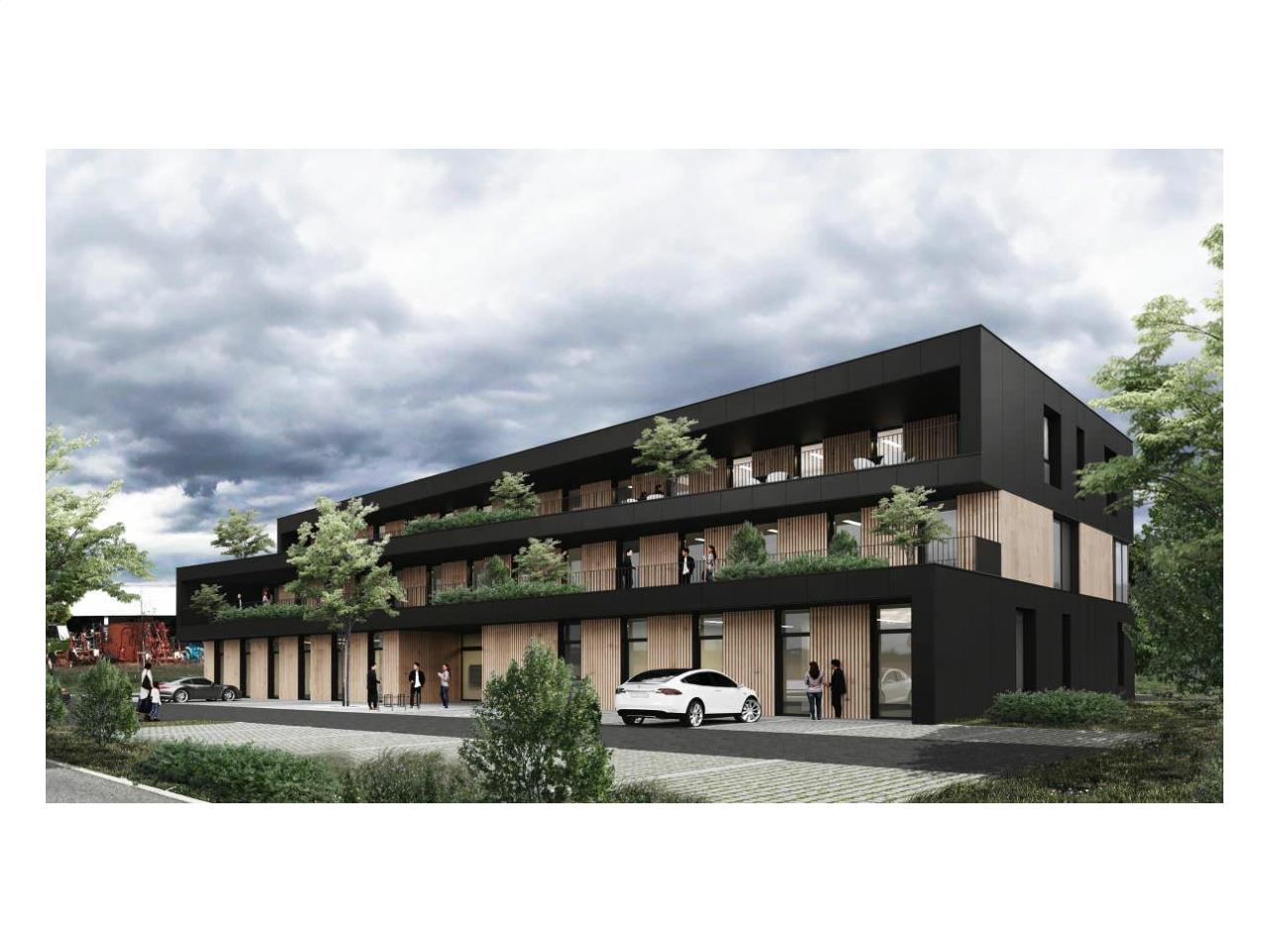En cours de construction, à l'entrée de Rumilly, à deux pas du Collège du CHERAN sur l' ECO PARC MADRID, Zae RUMILLY SUD, un beau bâtiment mixte de box, bureaux et services, de 1 600 m² environ avec larges terrasses. Réalisé suivant la règlementation RE 2020. Possibilité de portes sectionnelles arrières autorisant des activités mixtes en rdc tel du labo, show room, etc.. Stationnements aériens autour du bâtiment.