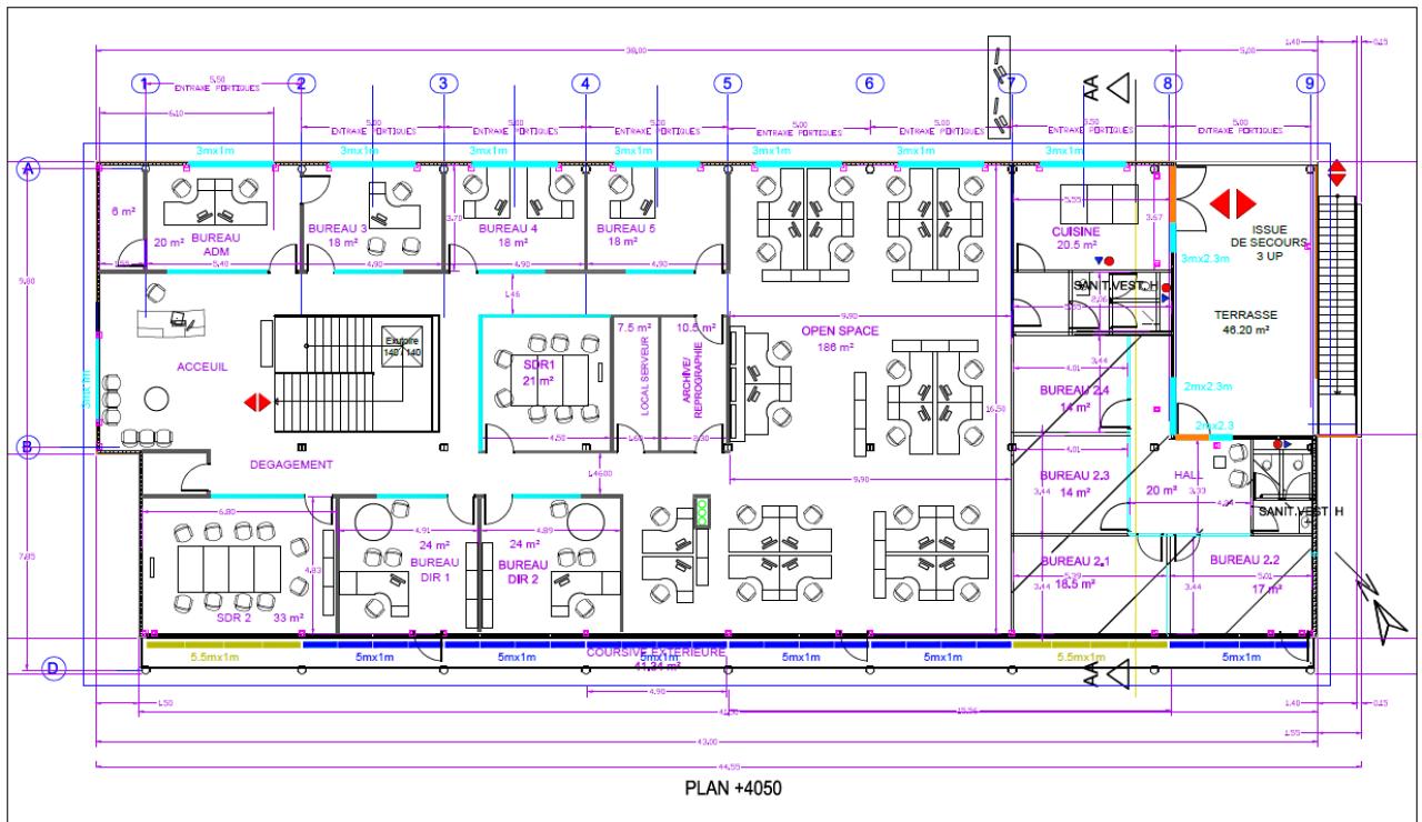 Une terrasse fermée de 50 m² au R+1, parfaite pour organiser une pause café au soleil ou un moment convivial entre collègues.