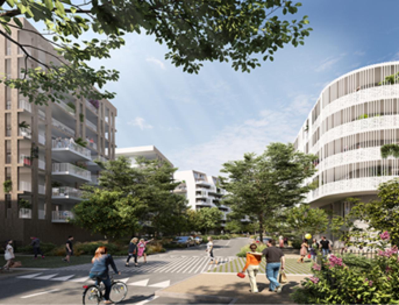 Au pied d'un immeuble d'habitation neuf