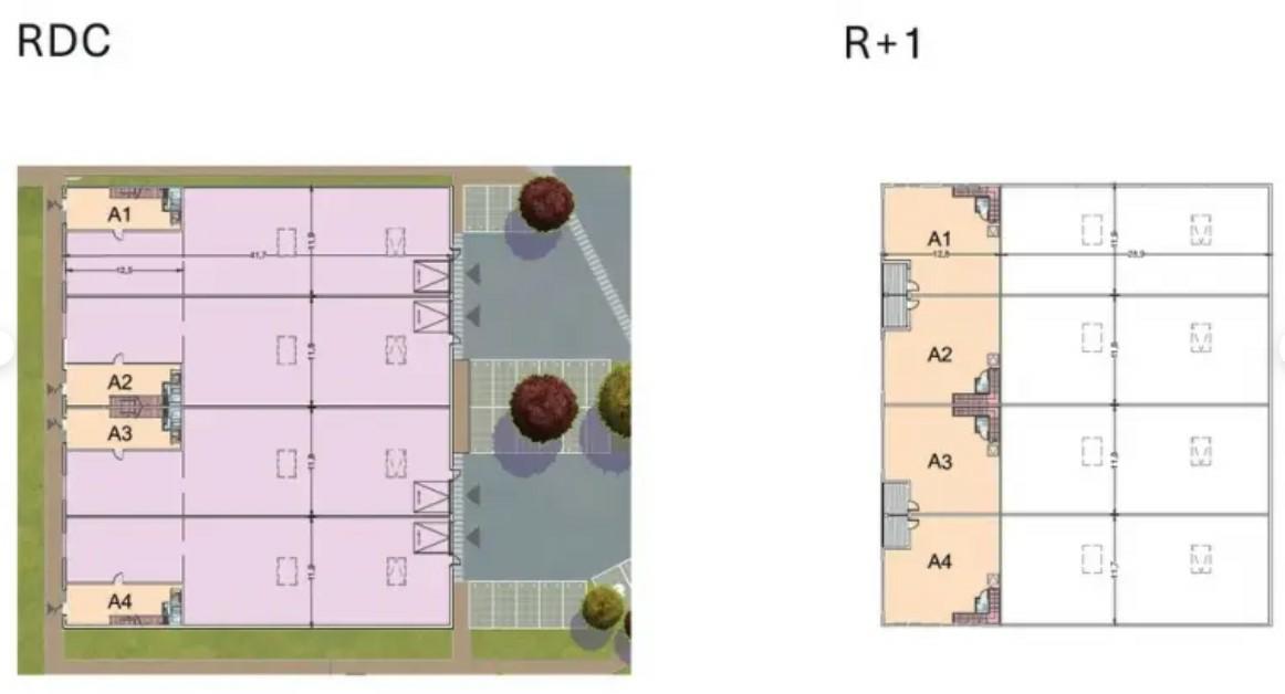 Chaque lot bénéficie d'une porte sectionnelle, d'une partie activité avec bureaux d'accompagnement.