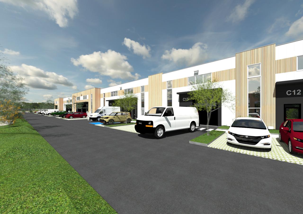 Chaque cellule sera livrée brut de béton et fluides en attente, avec une porte sectionnelle de plain-pied, une porte piéton. Chaque lot aura son emplacement pour l'enseigne et chaque futur propriétaire et/ou occupant aura 2 à 6 places de parking privatives, en fonction des cellules.