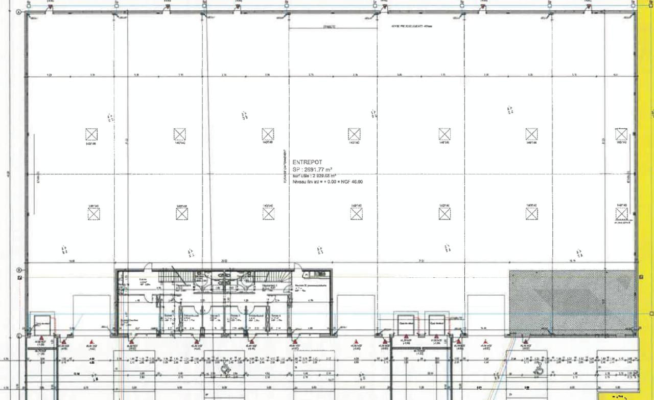 La surface de dépôt de 2790m² est isolée, et dispose d'une très belle lumière naturelle, et de belles hauteurs, et est accessible par 3 portes à quai et 3 portes de plain-pied.