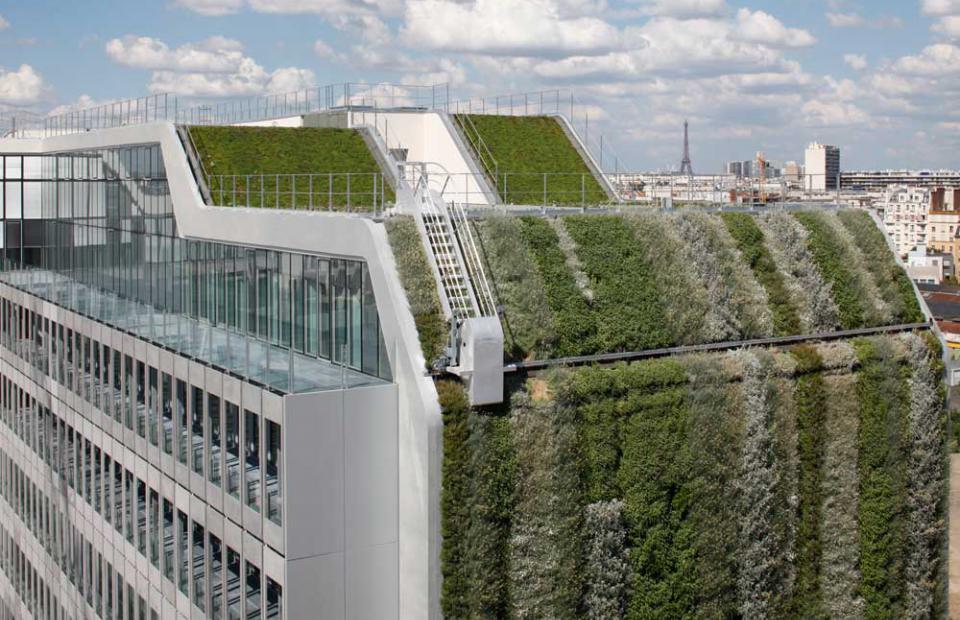 Cette « non-tour » singulière imaginée par Jean Nouvel se situe au nord-ouest du territoire. Elle se structure comme une succession de paysages horizontaux, une stratification qui réinterprète la géographie environnante et qui permet d'offrir aux utilisateurs des paysages proches, sous la forme de grandes terrasses plantées d'arbres, et des vues lointaines, vers le grand paysage. Trois matériaux différents caractérisent chaque volume (béton sculpté, brique et verre). Le parti architectural adopté vise à s'intégrer au parc de Billancourt, à dialoguer avec les coteaux de Meudon et la skyline parisienne et à définir des matérialités de façade en rupture avec le langage convenu des immeubles de grande hauteur.