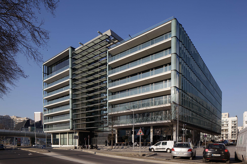 Retour au sud-ouest du Trapèze, entre la Seine et le parc Billancourt, avec cet immeuble de bureaux qui se compose de deux ailes de hauteurs inégales (six et huit étages), disposées autour d'un atrium conçu à la façon d'une « rue couverte intérieure ». Un dispositif de plateformes et d'ascenseurs panoramiques permet de desservir les deux ailes par le cœur de l'immeuble, dans un espace commun et lumineux, donnant à la fois sur la Seine et sur le parc. Ce dispositif génèrera des espaces atypiques et uniques pour chacune des plateformes, qui pourront aussi bien être utilisées comme des espaces de travail ou d'accueil que comme des espaces de détente, de vie et de rencontre.