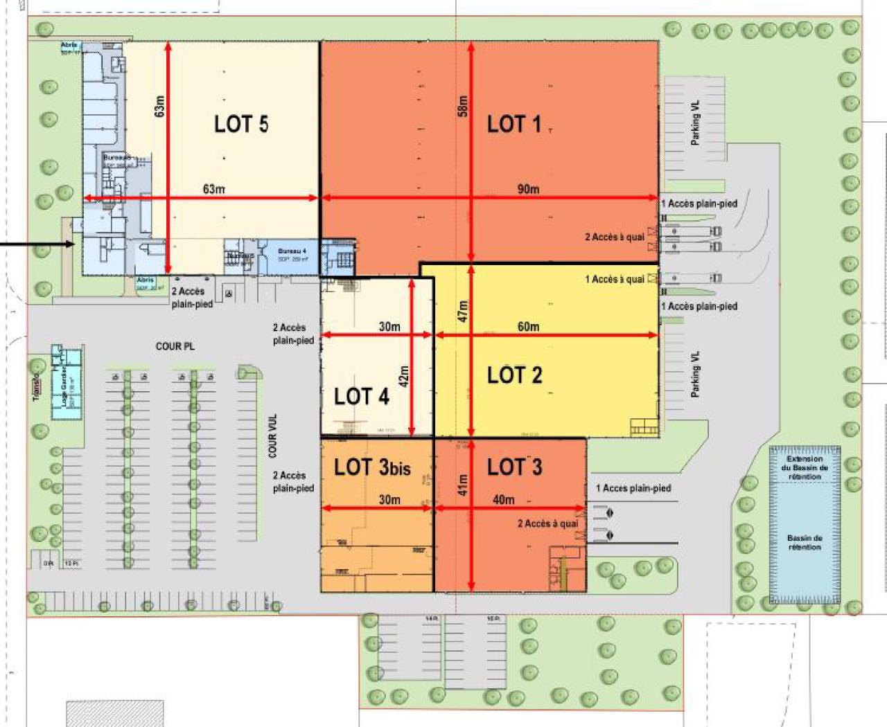 - Accès poids lourds dédiés, quais et portes à quai, aires de manœuvre et parkings.