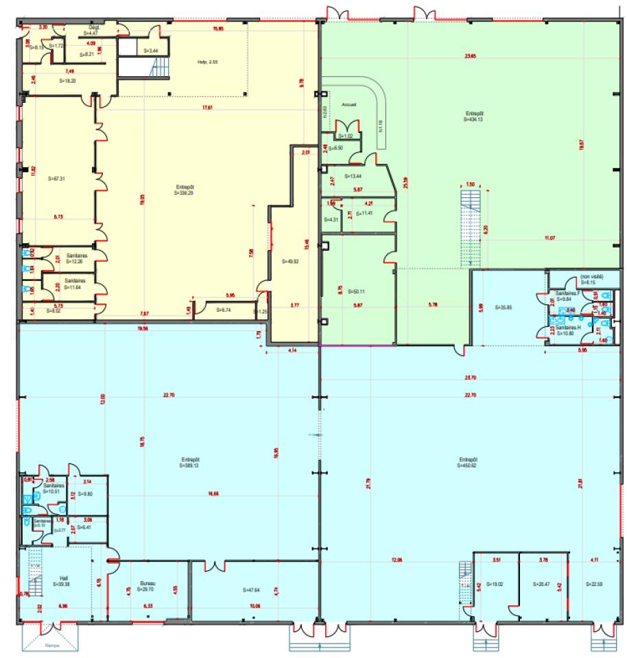 - Cellules divisibles avec bureaux intégrés, locaux sociaux, zones de préparation de commandes.